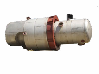 噴淋式飽和器是一種適于焦化工藝流程中,采用硫銨法凈化回收硫的噴淋式飽和器裝置。噴淋式飽和器包括上筒體、下筒體、外筒體、內(nèi)筒體、螺旋體、環(huán)形板、噴嘴、筋板、支座等,其中上筒體與筋板焊接連接,筋板與內(nèi)筒體焊接連接,螺旋體焊接連接在外筒體和內(nèi)筒體上,環(huán)形板焊接在外筒體內(nèi),若干個(gè)噴嘴裝置在環(huán)形板上,錐形體焊接在外筒體上,下筒體焊接在錐形體上,橢圓封頭焊接在下筒體上。本實(shí)用新型無內(nèi)襯,耐腐蝕,設(shè)備整體重量輕,占地面積小,使用壽命長,煤氣凈化率高,工藝流程簡捷,生產(chǎn)效率高。 硫銨工段采用噴淋式飽和器生產(chǎn)工藝:來自脫硫工段的煤氣經(jīng)預(yù)熱器進(jìn)入飽和器,在飽和器上段分兩股進(jìn)入環(huán)形室,被循環(huán)母液噴灑后,煤氣合成一股進(jìn)入后室被母液噴淋,再進(jìn)入飽和器內(nèi)除酸器,分離煤氣所夾帶的酸霧,*后送終冷洗苯工段。