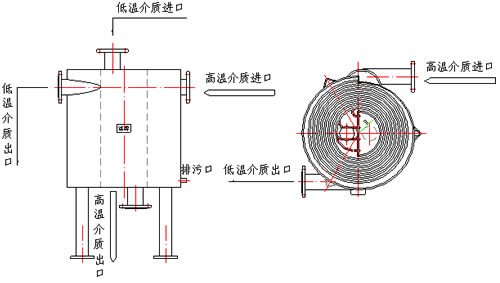 螺旋板式換熱器以完全逆向交換,傳熱效率高、結(jié)構(gòu)緊湊、體積小,高速均勻流動,污垢不宜沉積、結(jié)垢。換熱面積大等特點應(yīng)用于各個領(lǐng)域。 本公司經(jīng)過多年努力研發(fā)了“螺旋管式換熱器”新型產(chǎn)品,并申報了專利,產(chǎn)品專利號為:2010101196073。螺旋管式換熱器采用δ=0.8㎜厚不銹鋼管,利用多根螺旋管,管間并排無隙設(shè)置成螺旋盤管組,專用設(shè)備卷制成型。利用螺旋板式換熱器的運行原理達到完全逆向交換換熱。螺旋管式換熱器管內(nèi)為一螺旋通道,管外形成另一螺旋通道,管內(nèi)通道走高溫、高壓且有腐蝕介質(zhì),管外通道走另一種介質(zhì)。外型與螺旋板式換熱器相同,完全達到了螺旋板換熱器的運行原理,上下采用法蘭、盲板密封,可清洗管外通道,取消焊接,降低鋼管熱膨脹損失。也可采用管外通道直通無阻力運行,與列管式換熱器相同的體積,幾倍的換熱面積、效率。螺旋卷制解除了熱脹冷縮,由于壓差大、溫差大所采取的必須措施,降低了成本,減少了投資,不銹鋼的材質(zhì),碳鋼的成本,高效率的傳熱效果,為更好的服務(wù)客戶提供了新亮點。 其優(yōu)點為:不銹鋼管承壓高、耐高溫和耐腐蝕,承壓可達6MPa,成本低換熱效率高。如果一側(cè)腐蝕嚴重而另一側(cè)不腐蝕,螺旋管為不銹鋼管走腐蝕嚴重的介質(zhì),外圈板及堵板可用碳鋼板,這樣可降低成本。不銹鋼管管壁薄逆向交換換熱效率高。和螺旋板換熱器相比,按碳鋼的比較使用壽命長;按不銹鋼的比較價格低。 技術(shù)特性: 1、承壓高,尤其是適用于壓差大的場合,最高承壓可達6.3MPa,耐高溫。 2、螺旋管采用各種要求材質(zhì)的不銹鋼管,抗腐蝕、耐熱性能強,壁薄傳熱效率高?蛇\用到各種行業(yè),冷卻加熱等應(yīng)用以及采暖洗浴。 3、本產(chǎn)品分為不可拆式、可拆式、洗浴專用4種型式,多種型號。 ○1不可拆式I型 不可拆式I型與螺旋板式換熱器相同,上、下將管外通道采用氬弧焊焊接密封,規(guī)格由F=4㎡~250㎡,均可加工制造。